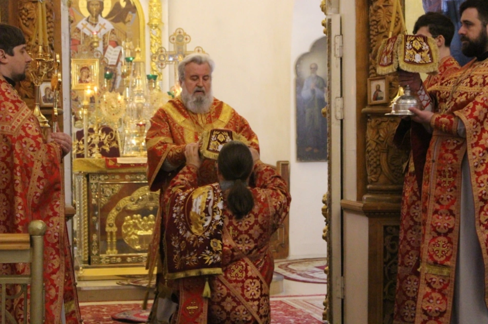 За Богослужением, после сугубой ектинии, владыка Сергий вознес молитву о мире.