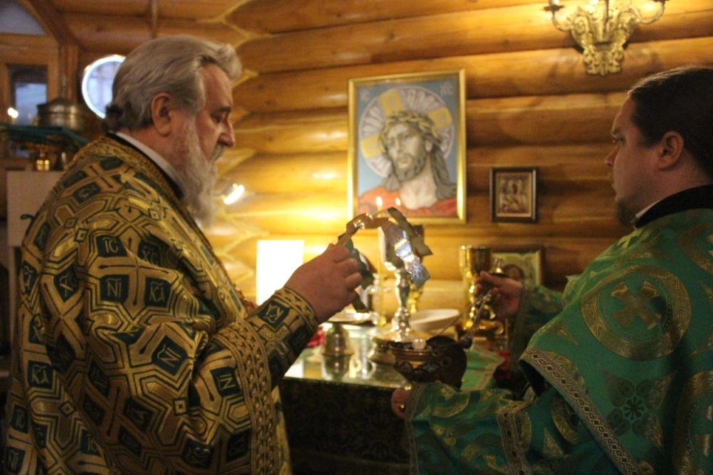 За богослужением, после сугубой ектинии владыка Сергий вознес молитву о мире.