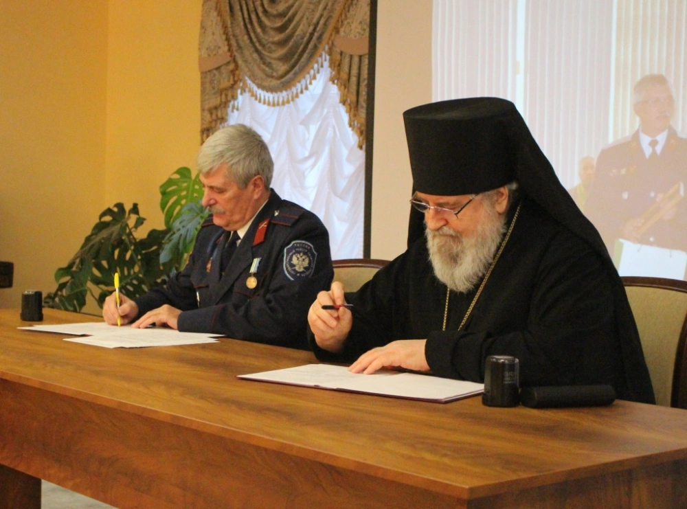 Затем в торжественной обстановке были подписаны соглашения между Вяземской епархией в лице епископа Вяземского и Гагаринского Сергия и Смоленским отдельским казачьим обществом в лице атамана Миненкова А.В., а также между приходами Вяземской епархии в лице настоятелей и атаманами казачьих хуторов.