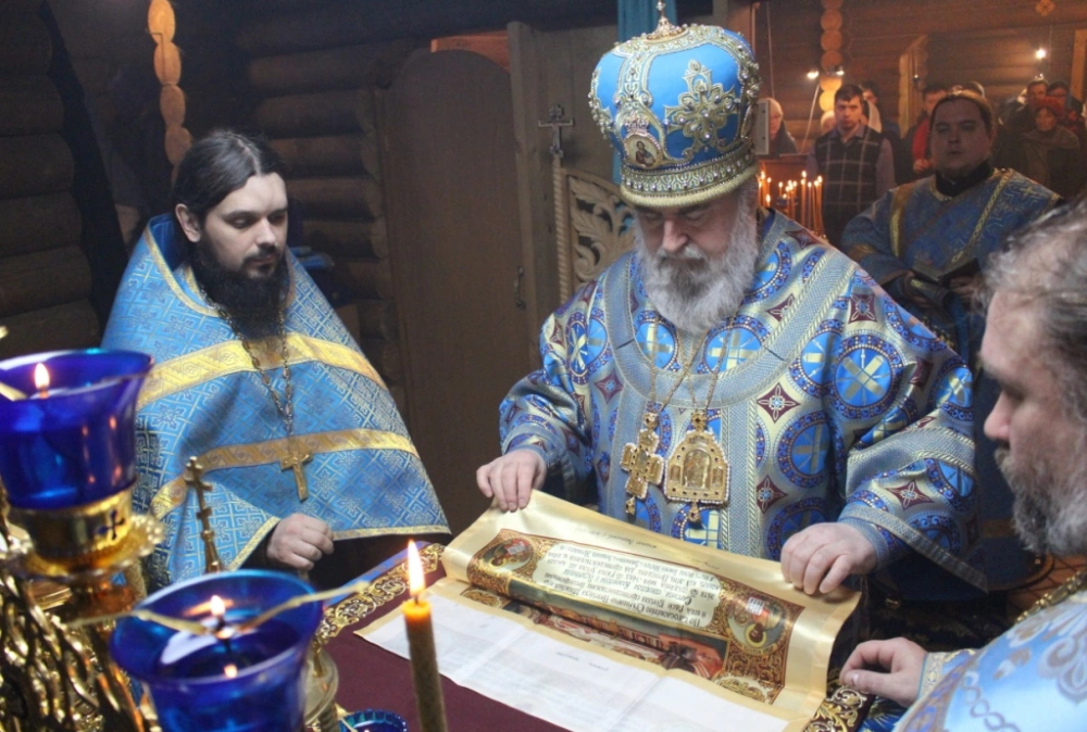 По окончании богосужения было совершено славление перед образом иконы Божией Матери "Знамение, после чего владыка Сергий обратился с Архипастырским словом ко всем участникам богослужения.
