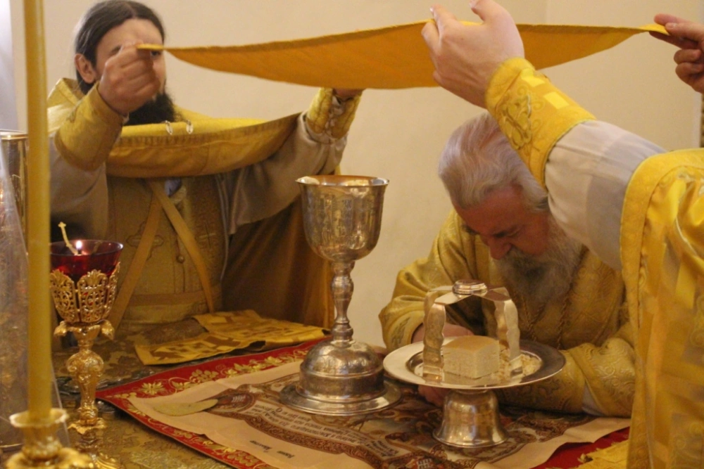 За Богослужением, после сугубой ектинии, владыка Сергий вознес молитву о мире.