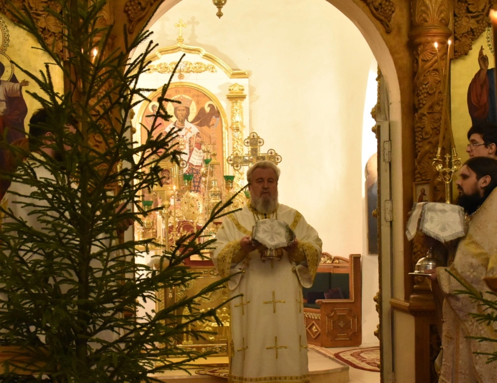 В завершении праздничного Богослужения было совершено славление Спасителя и Господа нашего Иисуса Христа, после чего преосвященнейший Сергий обратился ко всем участникам Богослужения с Архипастырским словом, поздравив с праздником Рождества Христова.