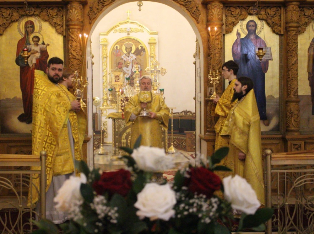 За Богослужением, после сугубой ектинии, владыка Сергий вознес молитву о мире.