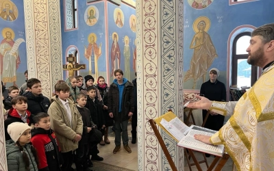 За Божественной Литургией молились дети и учителя сельских школ. После легкой трапезы, настоятель храма священник Алексий приветственным словом открыл начало творческой части мероприятия.