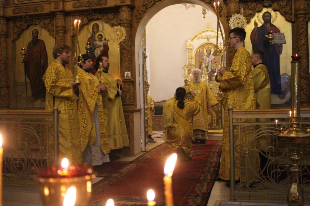 За Богослужением, после сугубой ектинии, владыка Сергий вознес молитву о мире.