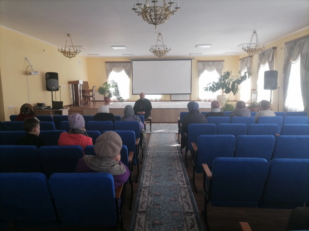 Перед просмотром протоиерей Олег Переверзев провел беседу в формате вопрос-ответ с присутствующими на тему второй подготовительной недели Великого поста — Недели о блудном сыне.