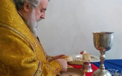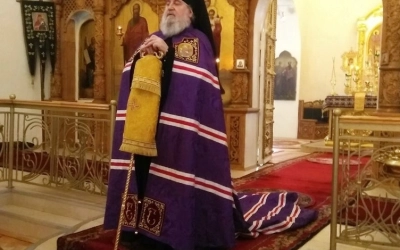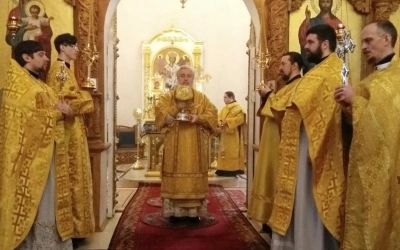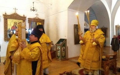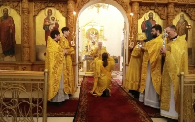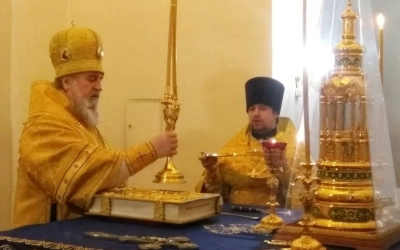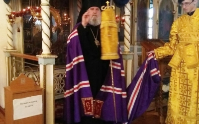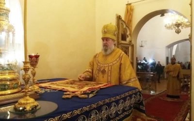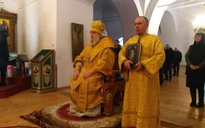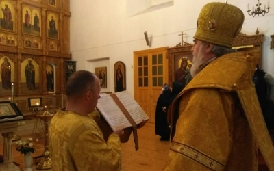 За Богослужением, после сугубой ектении, владыка Сергий вознес молитву о мире.