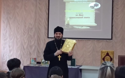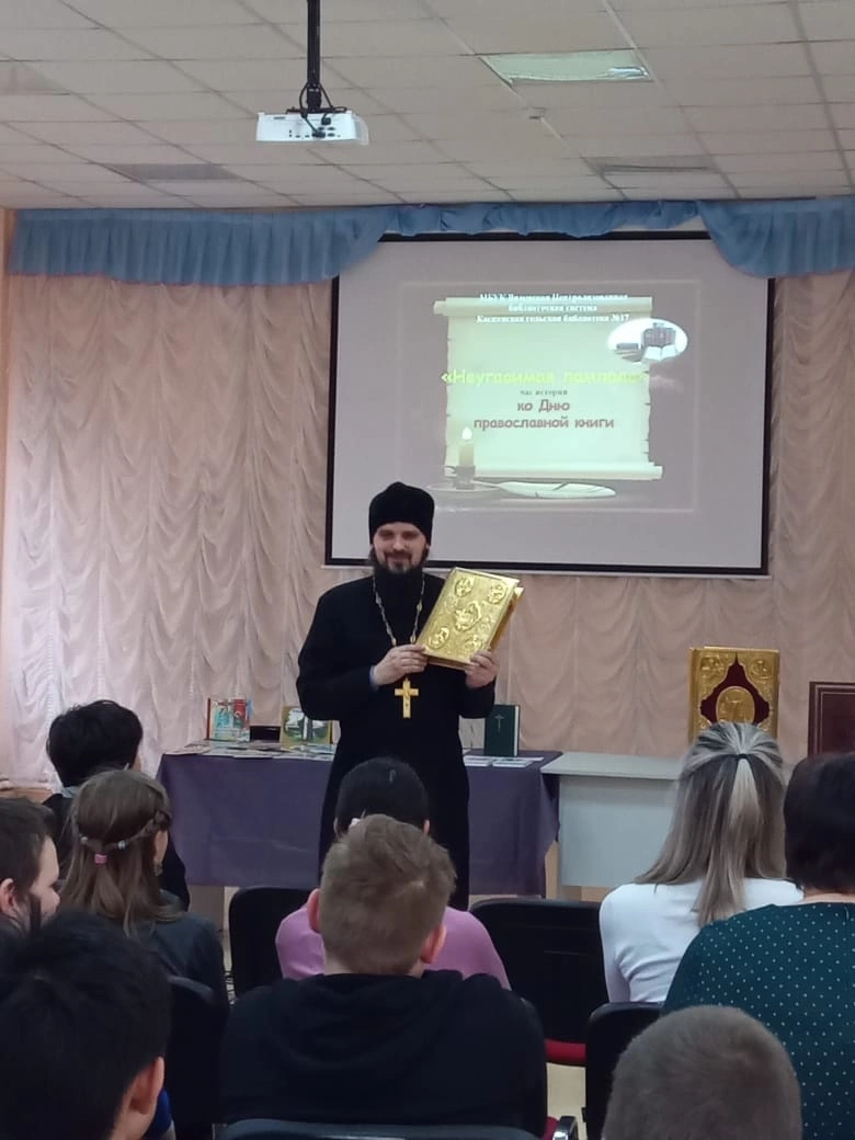 15 марта в ДК с. Касня прошло мероприятие, посвященное Дню православной книги. Главный сотрудник библиотеки Андреева Оксана Евгеньевна рассказала ребятам о книгопечатании, сопровождая лекцию показом слайдов. Благочинный Угранского округа иерей Александр Курмелев рассказал учащимся и преподавателям о церковных книгах, а также ответил на вопросы ребят. По окончании присутствующие имели возможность почитать на церковно-славянском языке.