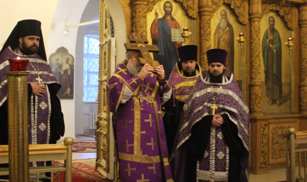 После великого славословия Епископ Сергий совершил чин выноса Креста.