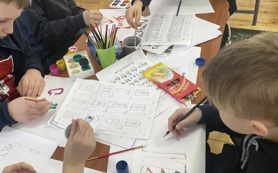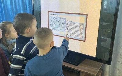 Отвечая на вопрос,какие книги православные, не только взрослые, но и дети сразу вспоминают Библию, Евангелие, молитвослов... А вот как они появились, - для многих только частично известно. К Дню Православной книги, который отмечался 14 марта в воскресной школе «Введение во храм» прошло занятие по истории возникновения древней рукописной книги. Первые книги были богослужебные, но культура древнего текста почти не знакома современным детям, и ребята с удивлением открывали для себя мир древних шрифтов, познакомились с начертанием букв рукописного полуустава. Итогом урока были трудоёмкие попытки написания своих имён с помощью букв церковно-славянской азбуки.