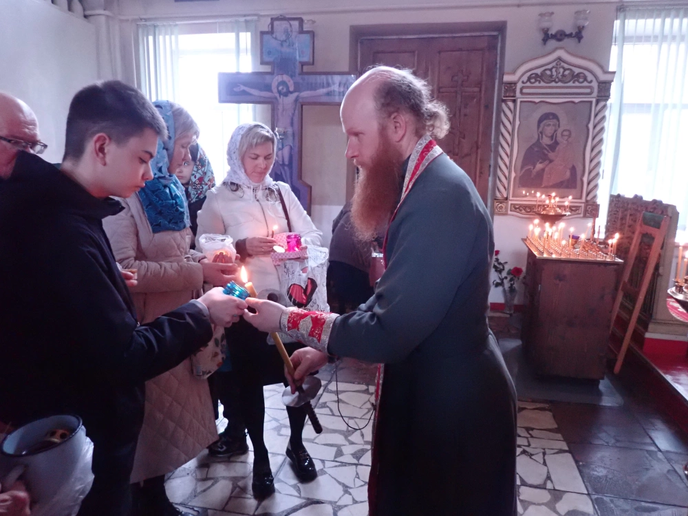 В полдень о.Сергий отслужил Пасхальный молебен, пройдя с прихожанами крестным ходом вокруг храма. После богослужения священник раздал верующим Благодатный огонь, частицу которого доставили из главного храма Вооруженных сил Российской Федерации. Празднование Светлого Христово Воскресения продолжилось за пасхальной трапезой, куда были приглашены все прихожане храма Рождества Христова.