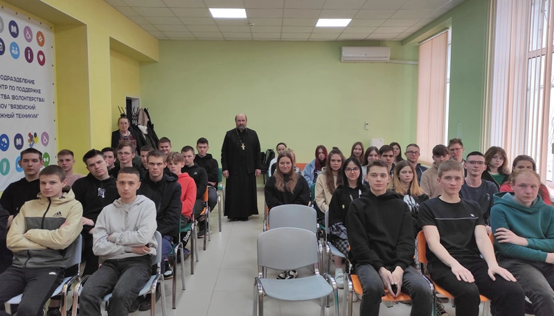 17 апреля 2023 года настоятель Введенской церкви г. Вязьмы протоиерей Олег Переверзев провел встречу со студентами СОГБПОУ "Вяземский железнодорожный техникум".