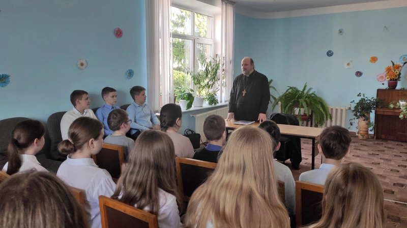 19 апреля 2023 года в Центральной библиотеке г. Вязьмы состоялась встреча настоятеля Введенской церкви протоиерея Олега Переверзева с учащимися МБОУ СОШ №10. Беседа на тему Светлого Праздники Пасхи была илюстрирована фотографиями икон евангельских событий Страстной седмицы (начиная с воспоминания Воскрешения прав. Лазаря) и Воскресения Христова. Священник рассказал детям подробно о каждом спасительном событии, отвнетил на их вопросы.