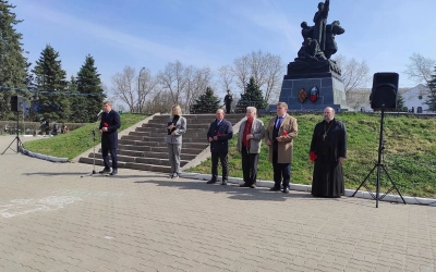 У памятника состоялся митингс участием руководителей города и района, духовенства, казачества, учащихся, студентов, юнармейцев.