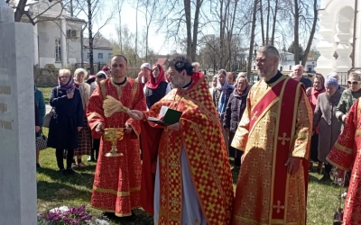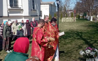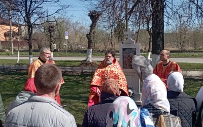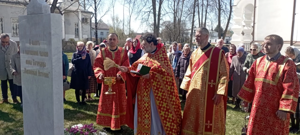 По окончанию Богослужения отец Александр освятил памятный знак, установленный на месте разрушенной в тридцатых годах прошлого столетия часовни, в честь иконы Божьей Матери «Живоносный Источник».