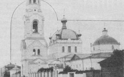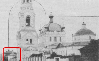 На фотографии того времени храмовый ансамбль Благовещенского собора представлен с еще целыми - колокольней , каменным забором и часовней.