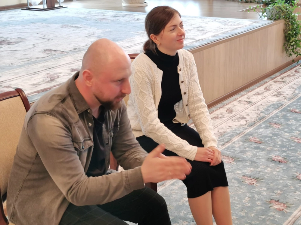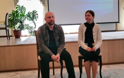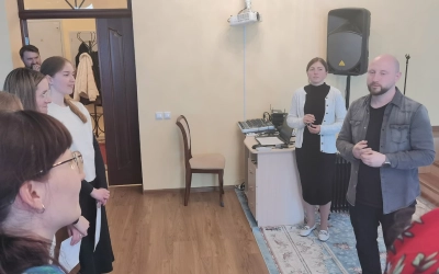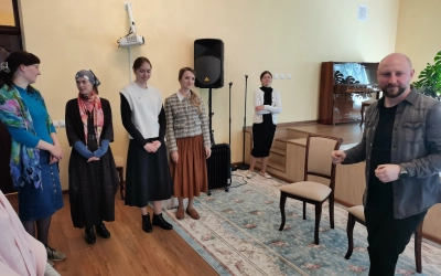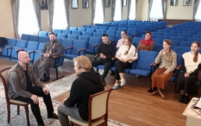 Занятие проводили эксперт Синодального отдела по делам молодежи, руководитель культурно-образовательного центра Тверской епархии "Пространство возможностей - Дом 36", психолог-консультант Ефремов Павел Александрович и выпускница факультета церковных искусств СПбДА, хормейстер молодежного хора Тверской епархии Молоткова Мария Андреевна.