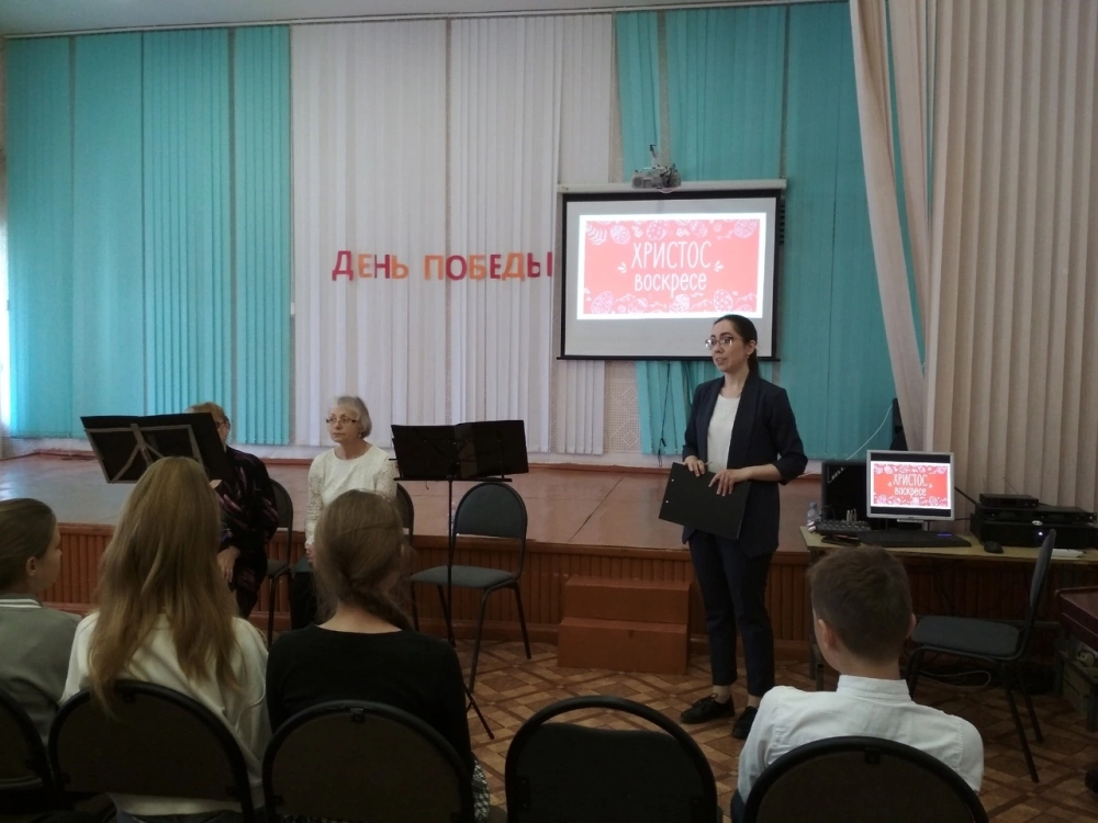 Необычный урок прошел сегодня для пятиклассников МБОУ «Андрейковская СОШ». Синтез музыки, изобразительного искусства и литературы – так была построена программа «От Прощёного воскресенья до Пасхи», которую показали ученикам участники хора церкови Петра и Павла Татьяна Васильева, Елена Чернолихова под руководством Дарьи Светловой.