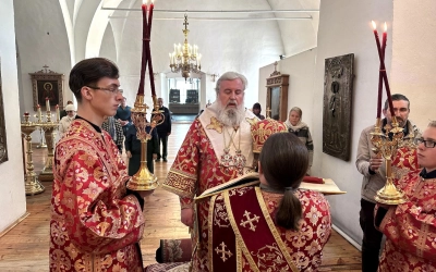 Богослужебные песнопения исполнил хор Свято-Троицкого собора - регент Елена Платонова.