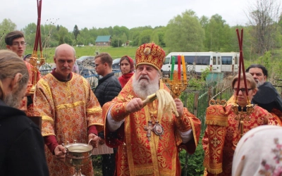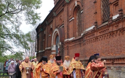 По заамвонной молитве был совершен Пасхальный Крестный ход, после чего было совершено славление перед иконой святого апостола и евангелиста Иоанна Богослова.