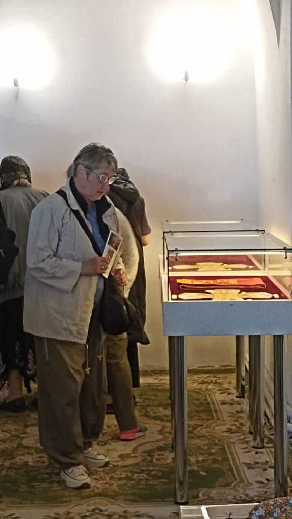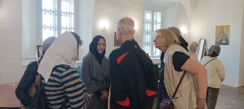 28 мая в храме возрождающегося Аркадиевского монастыря прошла выставка работ Студии лицевого и золотного шитья, руководитель инокиня Агния. Экскурсионная группа из Москвы познакомилась с работами вышивальщиц и миниатюрами Матушки Агнии. В тёплой атмосфере гости нашего Храма смогли побеседовать и получить ответы на интересующие вопросы.