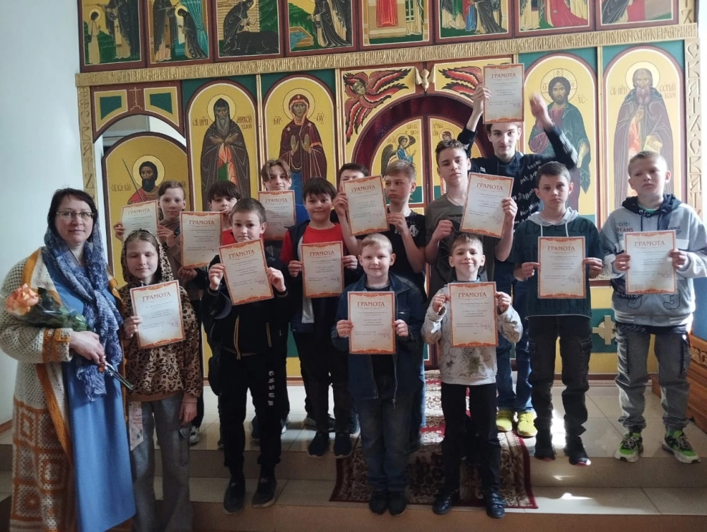 28 мая в воскресной школе Свято-Троицкого кафедрального собора было проведено занятие, завершающее учебный год. В трапезной прошло праздничное чаепитие. В ходе мероприятия особо активным ребятам, а также руководителю Елене Платоновой от прихода были вручены грамоты за труды, понесенные в течение учебного года.