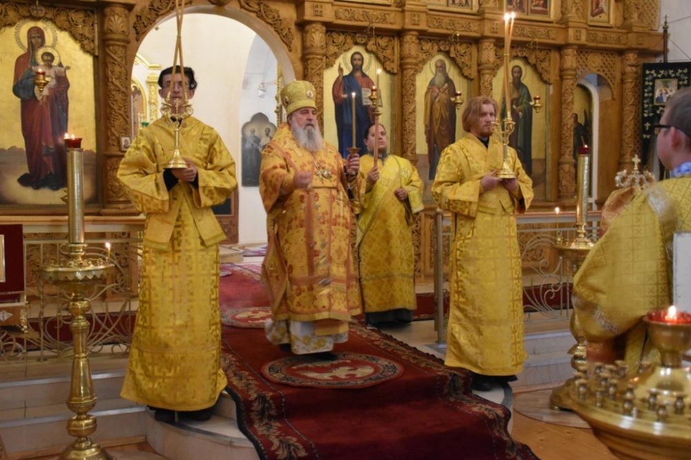 Правящему архиерею сослужил клирик собора иерей Максим Мамонов.