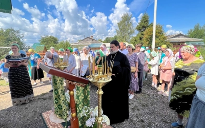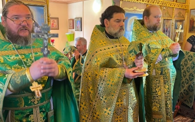 Несмотря на начинающийся зной, все молящиеся дошли до конечного пункта-храма преподобного Серафима Саровского в Ельне, где была совершена праздничная соборная Литургия, которую возглавил благочинный Гагаринского церковного округа игумен Александр /Карпиков/ в сослужении настоятеля храма иеромонаха Андрея /Дергачёва-Белошецкого/ и настоятеля Одигитриевского храма села Темкино иерея Сергия Морозова.