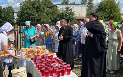 Престольный праздник завершился праздничной трапезой, которую подготовили для молящихся прихожане Ельнинского храма.