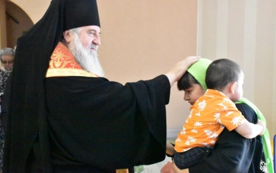 В своем слове Владыка Сергий пожелал всем трудящимся и опекаемым центра Божией помощи, а также вручил подарки: молитвословы, иконы, все необходимое для молодых мам.