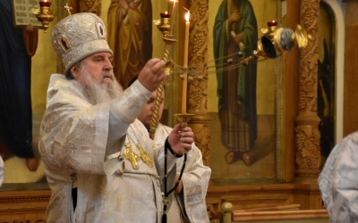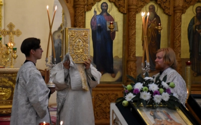 Богослужебные песнопения исполнил архиерейский хор (регент —Татьяна Курмелева).