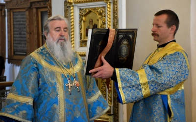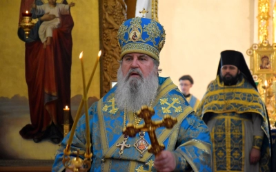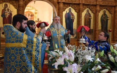 По отпусте Божественной литургии Преосвященнейший Владыка обратился к присутствующим с архипастырским словом, поздравив духовенство и всех участников богослужения с двунадесятым праздником.