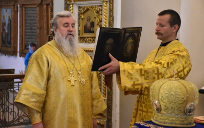 Богослужебные песнопения исполнил архиерейский хор (регент —Татьяна Курмелева).