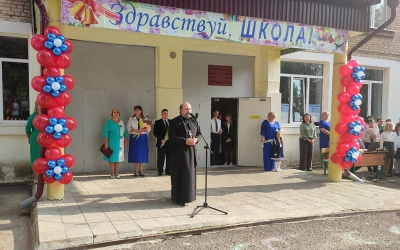 В своём выступлении перед аудиторией священник поздравил педагогов, родителей и учеников с праздником, отметив, что знания даются любопытным и трудолюбивым. Он пожелал всем мира, дружбы, стремления к высоким жизненным целям и Божией помощи в преподавании, воспитаниии, наставничестве и учении.