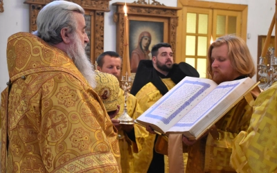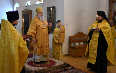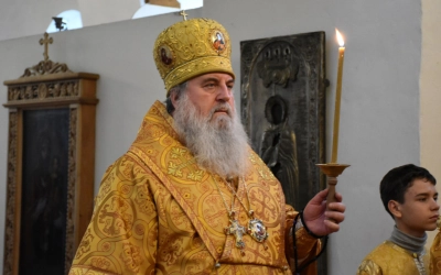 Его Преосвященству сослужили клирики собора: иерей Максим Мамонов и иеромонах Симеон (Берёзкин).