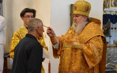 В продолжение богослужения Преосвященнейший Владыка Сергий совершил помазание освященным елеем и преподал архипастырское благословение духовенству и мирянам.