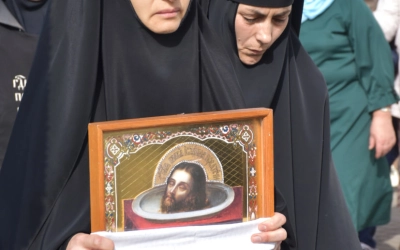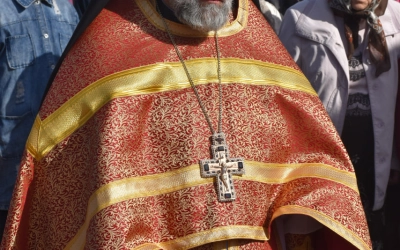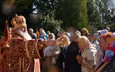Затем Преосвященнейший Владыка вместе с духовенством и мирянами совершили Крестный ход вокруг Одигитриевского храма. Во время торжественного шествия был совершен водосвятный молебен. После, епископ Сергий возглавил особый молебен по случаю Всероссийского Дня трезвости о "страждущих недугом винопития или наркомании".