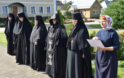 Разделить радость соборной молитвы вместе с архипастырем в престольный праздник собрались настоятельница монастыря игумения Лаврентия (Павлюченкова) с сестрами святой обители, гости и прихожане монастыря.