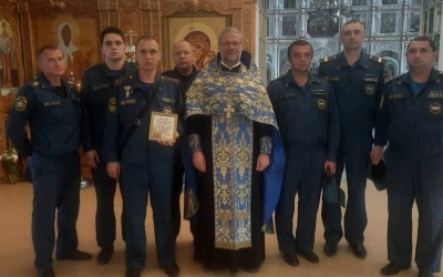 По окончании Литургии настоятель храма совершил молебное пение перед чтимым образом Богородицы, за которым молились руководитель и спасатели Пожарно-спасательной части № 12 ФГКУ "ОФПС по Смоленской области".