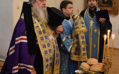 На Великой вечерне была совершена лития с освящением хлебов, пшеницы, вина и елея.