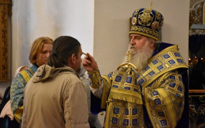В продолжение богослужения Преосвященнейший Владыка Сергий совершил помазание освященным елеем и преподал архипастырское благословение духовенству и мирянам.