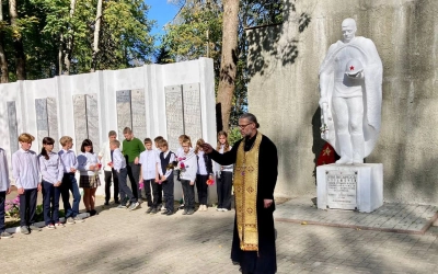 Отец благочинный совершил заупокойную литию. В своём слове священник почтил память погибших и отметил, что подвиг наших защитников Отечества нельзя предать забвению.