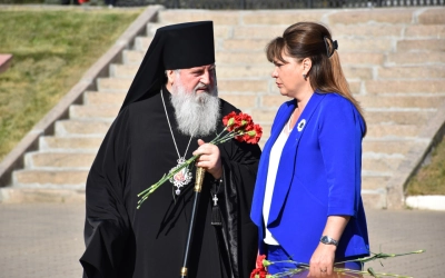В знак глубокого уважения участники митинга почтили память павших защитников Отечества Минутой молчания, возложили венки и цветы к Вечному Огню, а также к памятнику генералу-лейтенанту М.И. Ефремову.