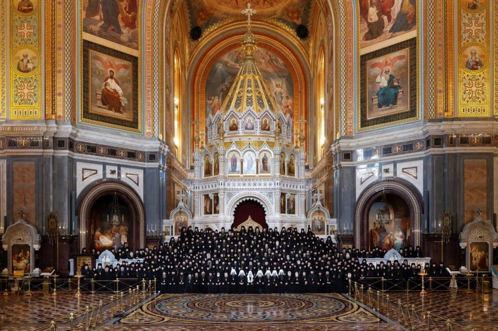 Перед началом собрания в нижней Преображенской церкви кафедрального соборного Храма Христа Спасителя была совершена Божественная литургия. За богослужением молились участники собрания, которые по окончании Литургии проследовали в Зал церковных соборов.