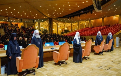 Предстоятель Русской Православной Церкви выступил с основным докладом.