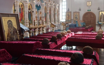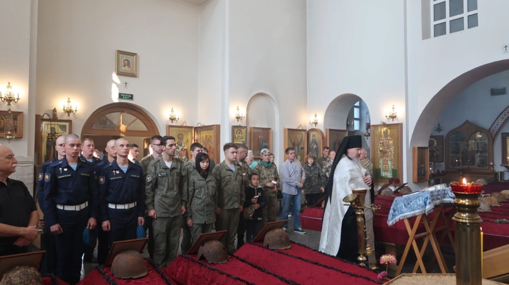 Накануне поисковики центра «Долг» поставили в Покровский храм 27 гробов с останками 247 воинов, найденных на Вяземской земле в ходе Вахты Памяти – 2023.