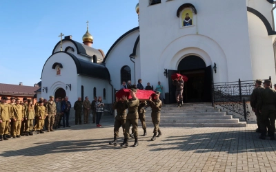 По окончании Божественной литургии старший священник монастыря иеромонах Даниил (Сычев) совершил отпевание воинов. В этот же день останки перевезли на мемориал "Богородицкое поле", где епископ Вяземский и Гагаринский Сергий совершил заупокойную литию.