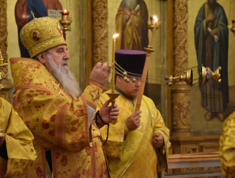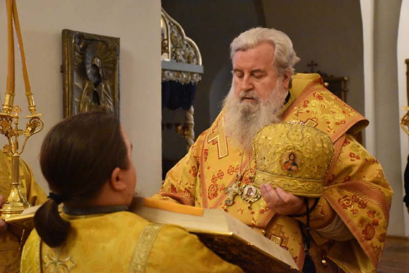 Его Преосвященству сослужили клирики собора: иерей Максим Мамонов и иеромонах Симеон (Берёзкин).