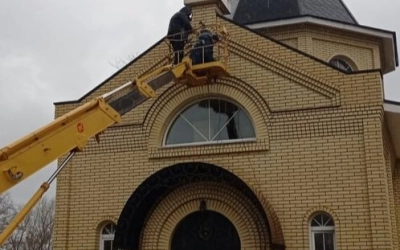 Весной этого года настоятель храма протоиерей Сергий Зеленков совместно с прихожанами приняли решение об изготовлении храмовой иконы, место для которой было подготовлено над входом.