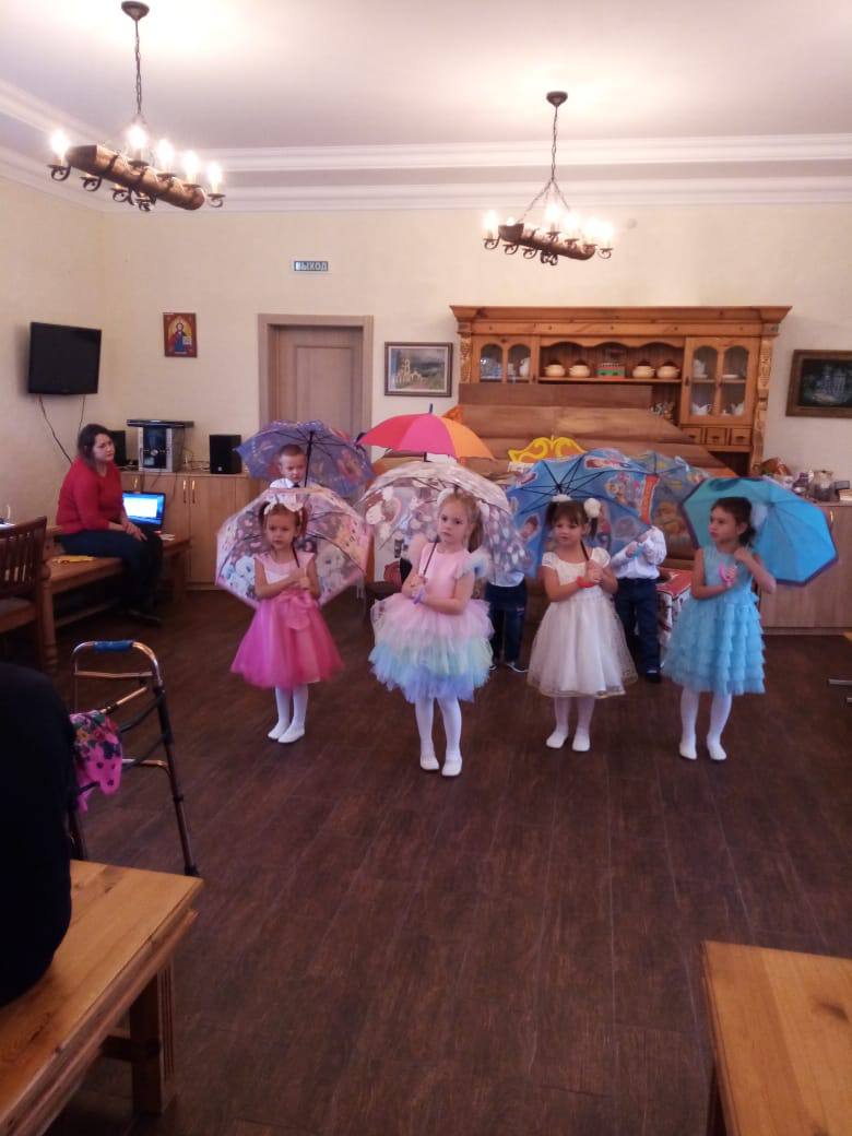 Коллектив детского садика подготовил замечательные музыкальные номера: песню, танец с осенними листочками, ансамбль с ложками, бубном, трещотками. Мальчики и девочки читали стихи, с мамами и всеми присутствующими отгадывали загадки и вспоминали пословицы, водили вместе со всеми желающими хоровод «Каравай».